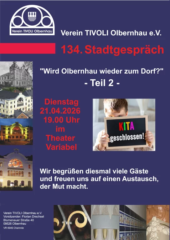 die “Stadtgespräche” des Vereins TIVOLI Olbernhau e.V. statt.